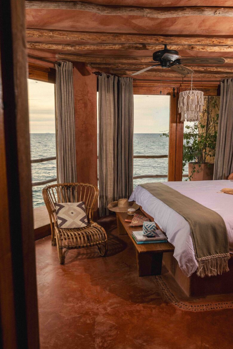 La Suite Concha Playa es una habitación amplia y luminosa de aproximadamente 45 m², ubicada frente a la playa con una vista abierta hacia Cala Mambo, las islas vecinas y un amanecer que entra directo por la ventana. Cuenta con una cama king y dos camas sencillas, ventilación cruzada, techos altos en palma, muros de piedra de Barichara y una terraza privada donde la brisa es constante. Está equipada con aire acondicionado y ventilador de techo, para asegurar confort a cualquier hora del día.