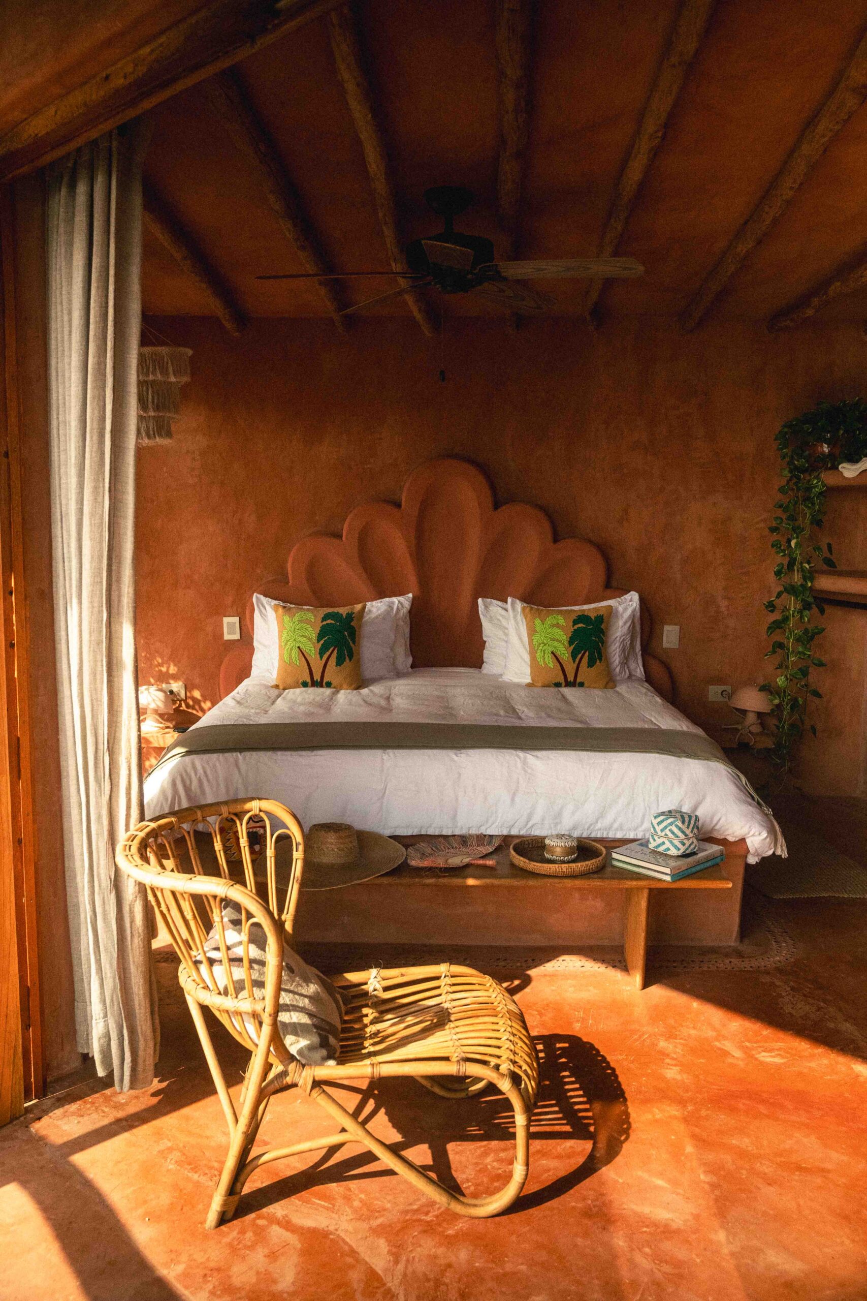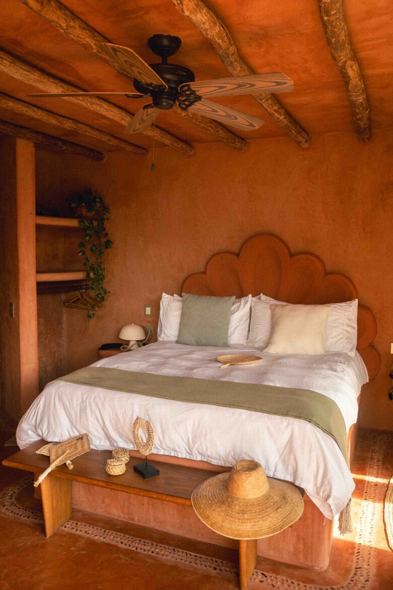 The perfect spot to wake up with a view. From your king-size bed, watch the sun rise over Isleta Bay and paint Cala Mambo in soft light. This 25 m² second-floor room has a private terrace, A/C, ceiling fan, and a bathroom that blends terracotta, wood, and hot showers for a natural yet refined experience.